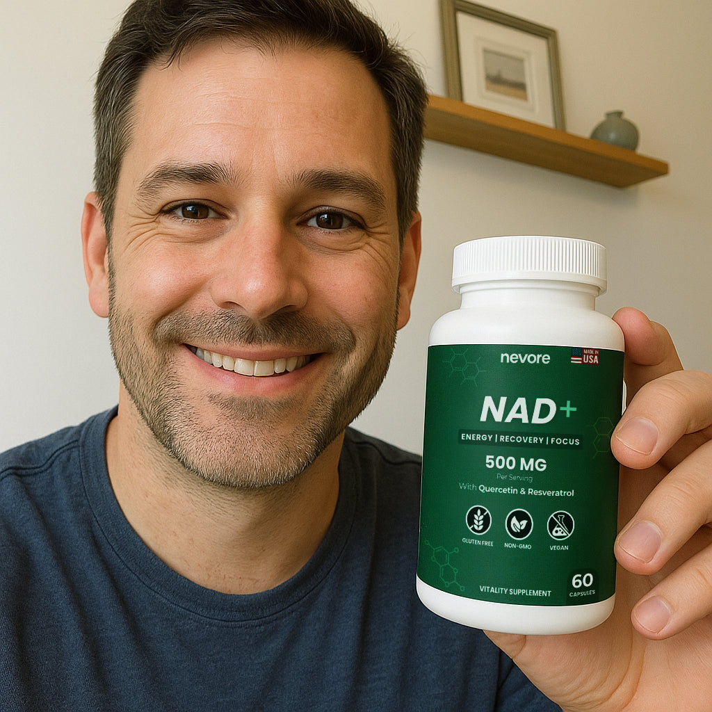 Introducing Nevore NAD+, a daily dose formulated to increase NAD+ levels by up to 67%. With a triple-action blend of NAD+, Quercetin, and Resveratrol, it supports mitochondrial health, brain function, and steady all-day energy. Wake up clearer, stay focused and productive longer, and feel younger from the inside out, because healthy aging starts at the cellular level.
